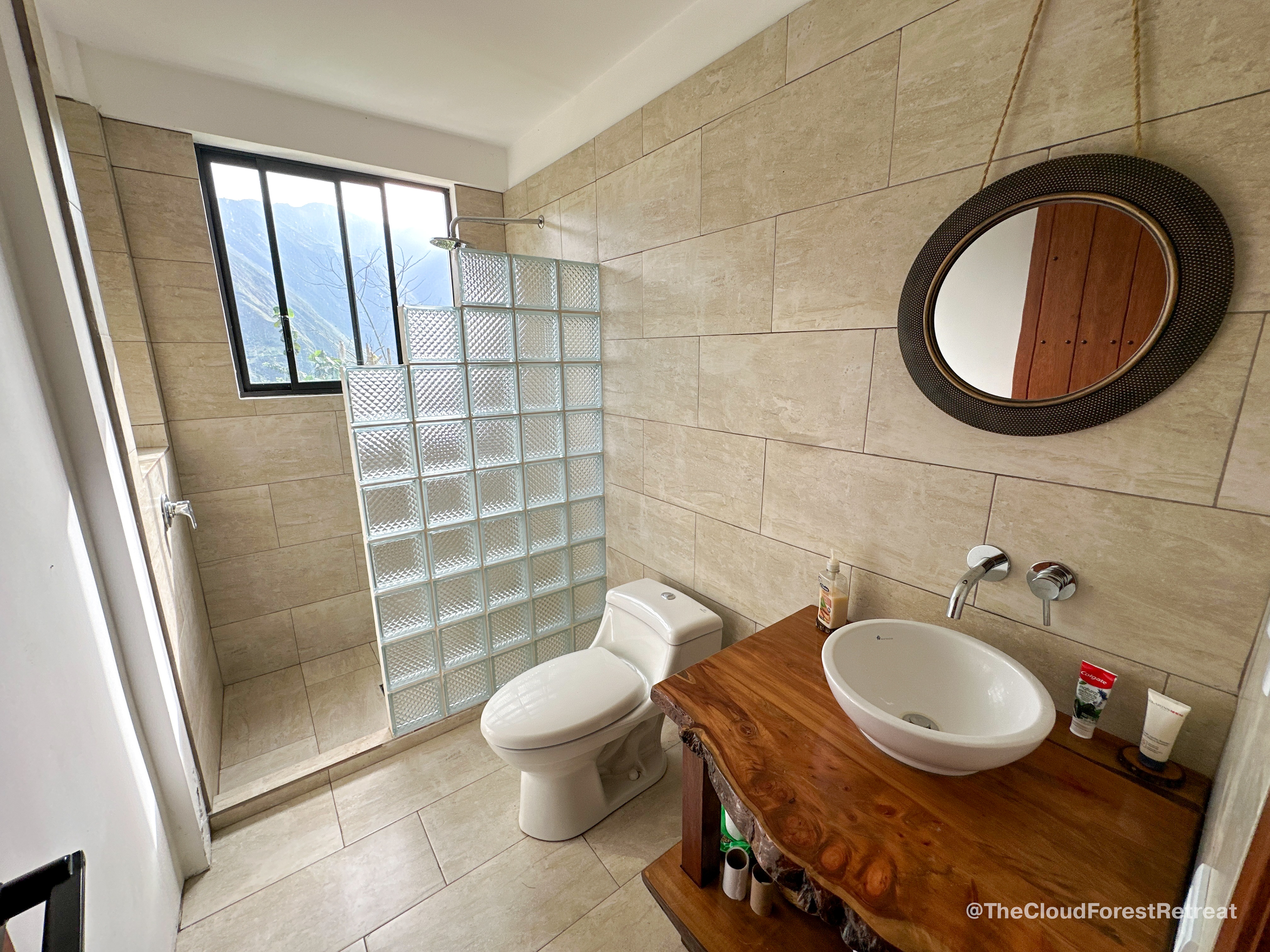 Experience comfort and convenience in our thoughtfully designed Guest Bathroom. Equipped with modern amenities and eco-friendly features, it complements your stay at The Cloud Forest Retreat with style and sustainability.